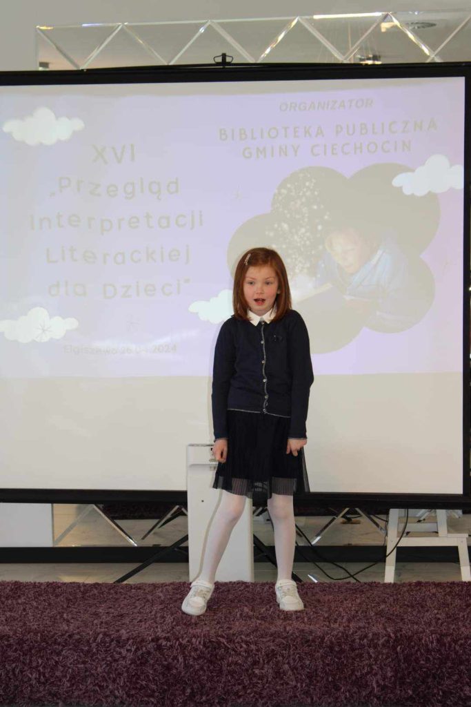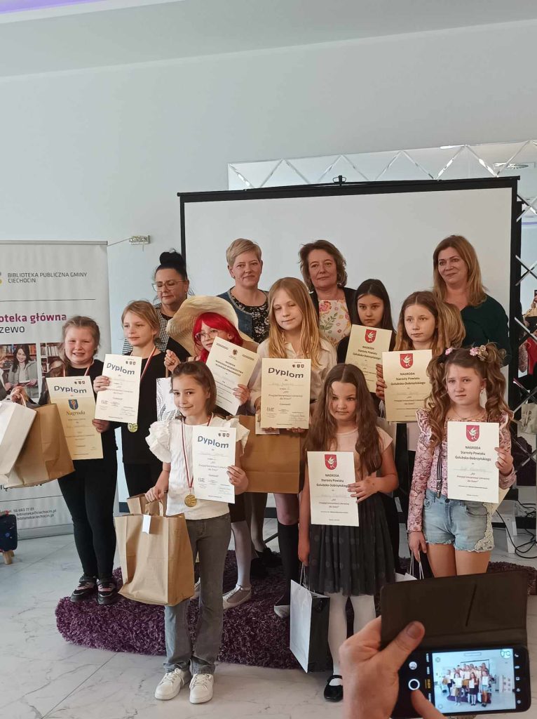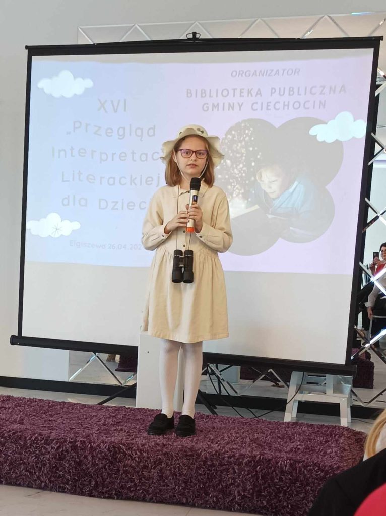 W piątek 26 kwietnia odbyła się XVI edycja Przeglądu Interpretacji Literackiej dla Dzieci organizowana przez Bibliotekę Publiczną w Ciechocinie. W tym roku naszą szkołę reprezentowały Maria Matyjasik (kat. klas I), Antonina Wieczyńska (kat. klas II) oraz Aleksandra Siekierska (kat. klas III). Nasze uczennice zajęły wysokie miejsca. Antonina zajęła I miejsce w swojej kategorii oraz otrzymała nagrodę Starosty Golubsko – Dobrzyńskiego, Aleksandra zajęła II miejsce w swojej kategorii, a Maria otrzymała nagrodę Starosty Golubsko – Dobrzyńskiego. Gratulujemy!