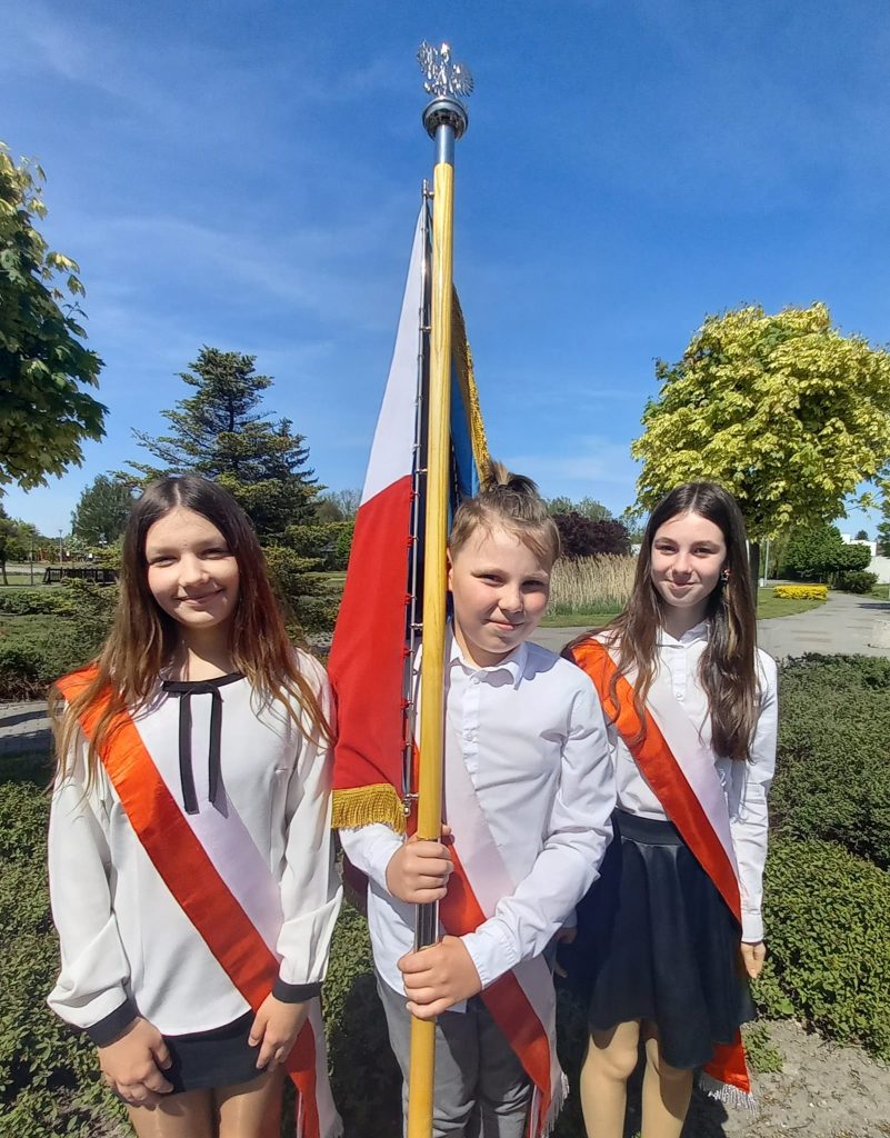 Sztandar naszej szkoły na gminnych uroczystościach z okazji Święta Konstytucji 3 Maja. Poczet sztandarowy w osobach Antoni Szwajkowski, Julia Foremska, Lena Wilczyńska razem z opiekunem Tomaszem Pałaszyńskim i Dyrektorem Szkoły Robertem Szwajkowskim uczestniczył w mszy świętej i przemarszu pod pomnik w Parku 700-lecia w Czernikowie. Wiwat 3 Maj!