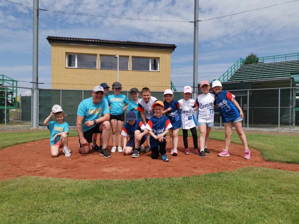 22 maja najmłodsza drużyna UKS Comets Mazowsze, klubu z dyscyplinami baseball i softball, działającego przy naszej szkole rozegrała swoje sparingowe mecze z drużyną Centaury Warszawa w Kutnie. W pierwszym meczu ulegliśmy rywalom 17:24. W drugim meczu ponownie musieliśmy uznać wyższość przeciwnika 7:17. Wielu z nas stawiało dziś swoje pierwsze kroki na baseballowym diamencie. Brawa należą się wszystkim zawodnikom. Będziemy dalej trenować, żeby w czerwcu na I Mistrzostwach Mazowsza w Warszawie zaprezentować się lepiej. Każdy z zawodników zdobywał dziś dla drużyny punkty, to ważne „…bo wilk jest siłą drużyny, bo wilka siła w drużynie…”. Skład: Basiński Antoni, Błaszkiewicz Blanka, Błaszkiewicz Jagoda, Bogusz Jowita, Filarska Hana, Filarski Ksawery, Lewandowski Filip, Lipińska Marika, Lipiński Mikołaj, Lubowicz Laura, Sztandarska Natalia, Robert Szwajkowski (trener).