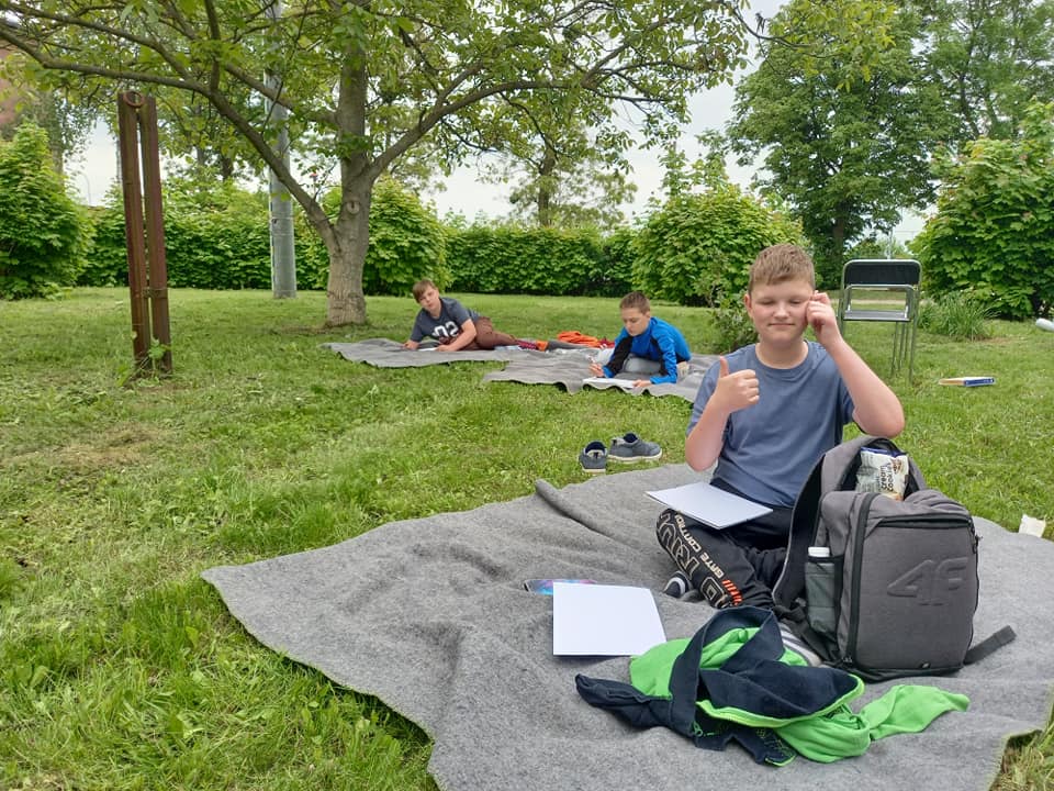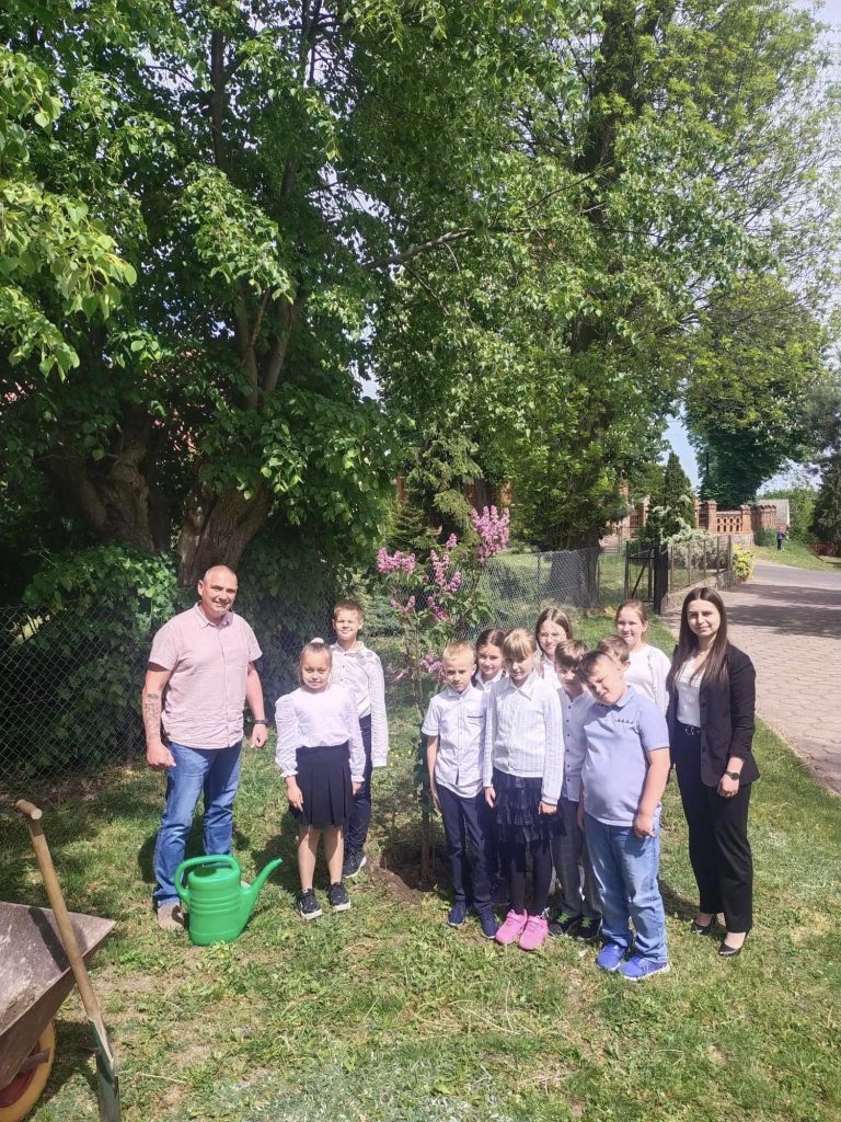 Można również zauważyć, że na terenie naszej szkoły pojawił się przepiękny bez. Kontynuując tradycję minionych lat, uczniowie po napisaniu sprawdzianu, wspólnie z wychowawczynią p. Karoliną i Panem Dyrektorem posadzili swój krzew. Spośród imion z kalendarza tego dnia wybrano imię Hiob.