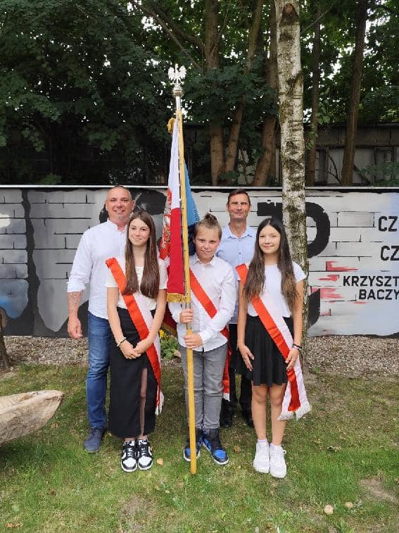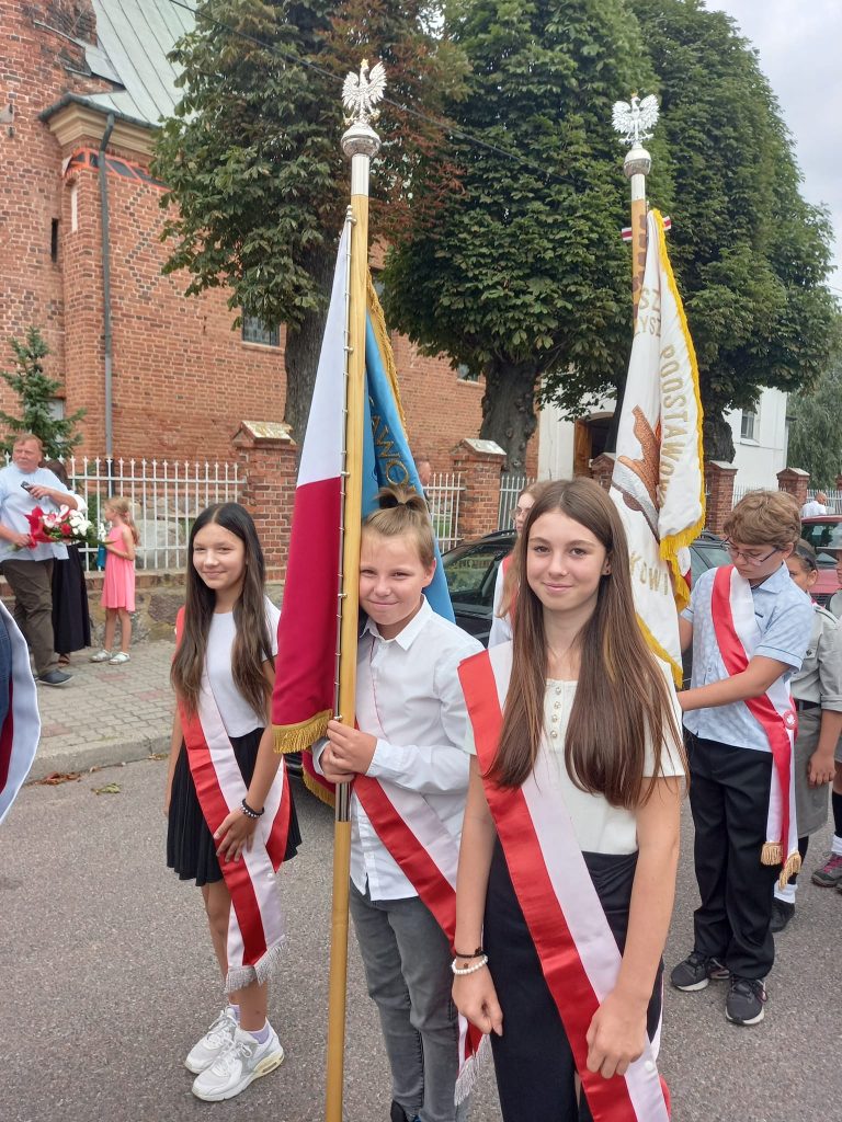 Nasz poczet sztandarowy na uroczystościach obchodów 80 rocznicy wybuchu Powstania Warszawskiego oraz 80 rocznicy śmierci Patrona Szkoły Podstawowej w Czernikowie Krzysztofa Kamila Baczyńskiego.