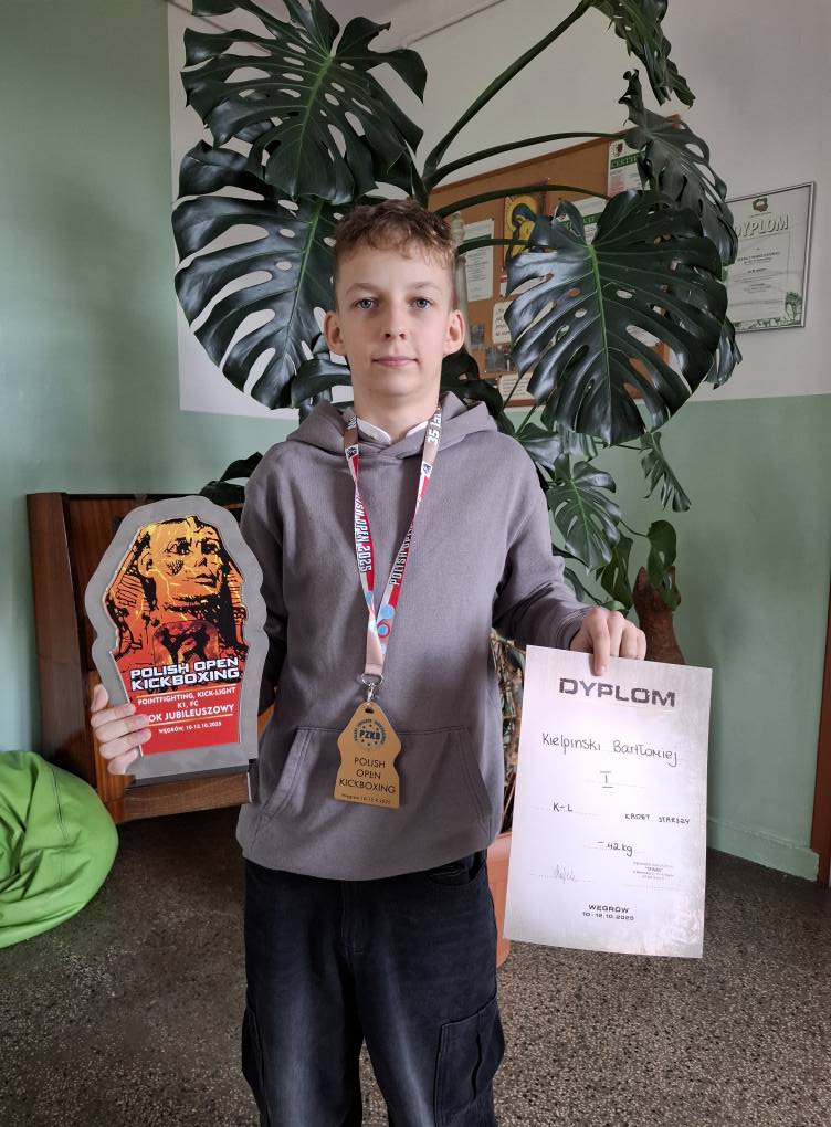 Bartłomiej Kiełpiński uczeń klasy siódmej naszej szkoły wygrywa międzynarodowy turniej Polish Open w Węgrowie. Dwukrotnie pokonuje reprezentantów z Łotwy. Bartek jest zawodnikiem A&W Team Obrowo. Gratulujemy i życzymy wielu sukcesów!