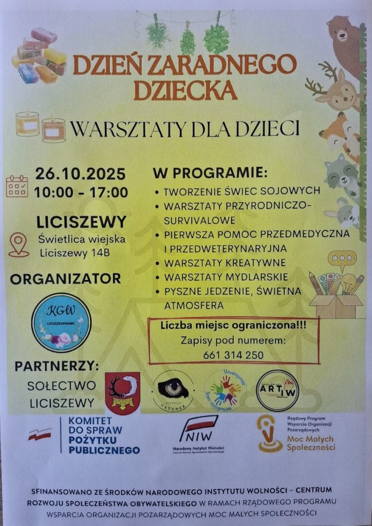 Zapraszamy na warsztaty dla dzieci – 26.10.2025 r. w Liciszewach.